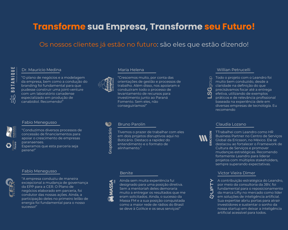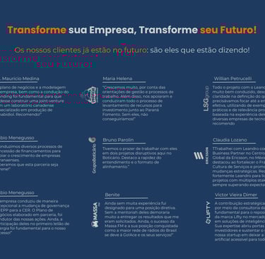 Com a nossa abordagem prática, GARANTIMOS que a TRANSFORMAÇÃO aconteça, do PLANEJAMENTO à implementação